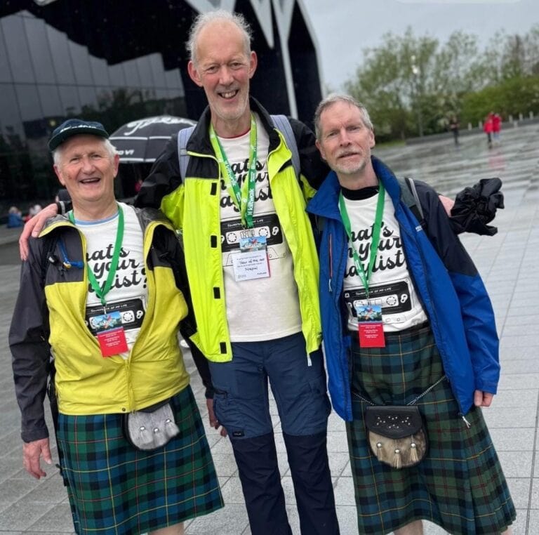 A team of walkers raised more than £800 for Playlist for Life by taking part in the Edinburgh Kiltwalk – including five walkers from our corporate charity partner Turcan Connell, alongside long-standing supporters and volunteers Elizabeth and Tracey.